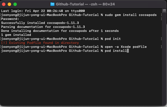 3. pod init 입력 -> Xcoded에 pod 파일을 생성함.