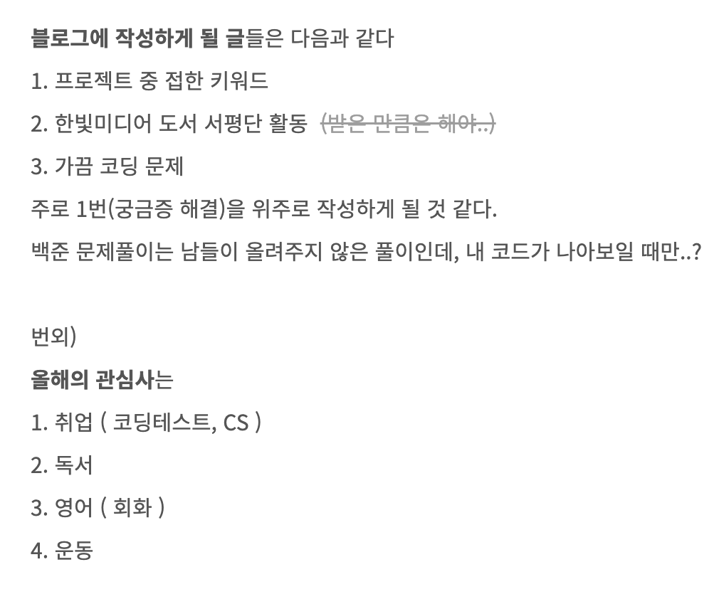 글또, 한빛미디어 서평, 개발 및 그 외 기록에 대한 정리하고 그 외 느낀 바를 정리하였습니다.