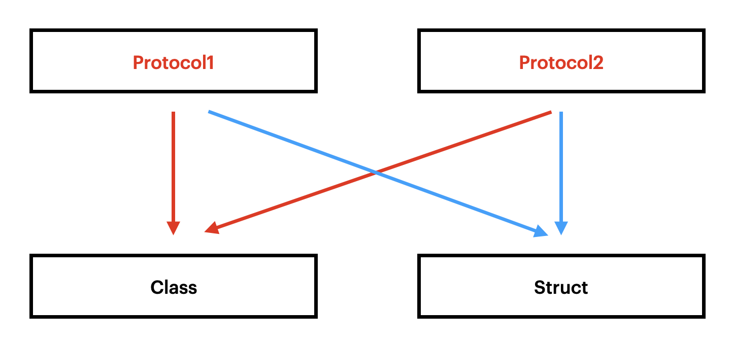 - 프로토콜의 요구사항(무엇을 하고, 무엇을 정의하는지)은 프로토콜을 채택한 클래스나 구조체 등에서 구현(어떻게 할 것인지)한다.