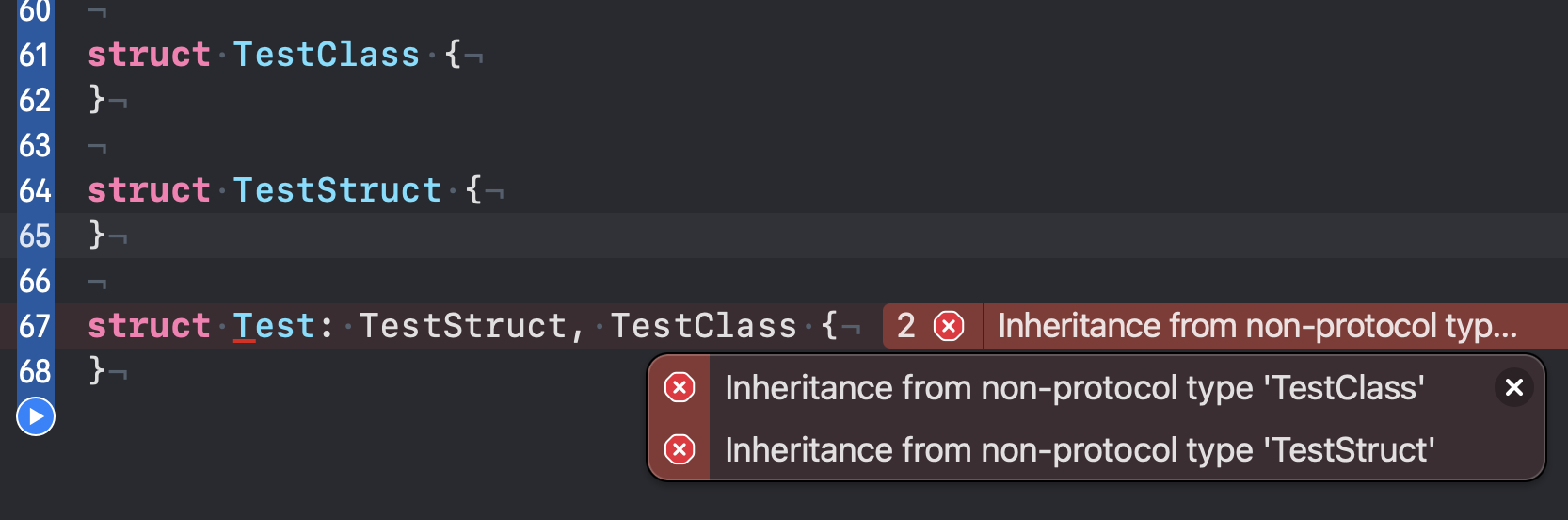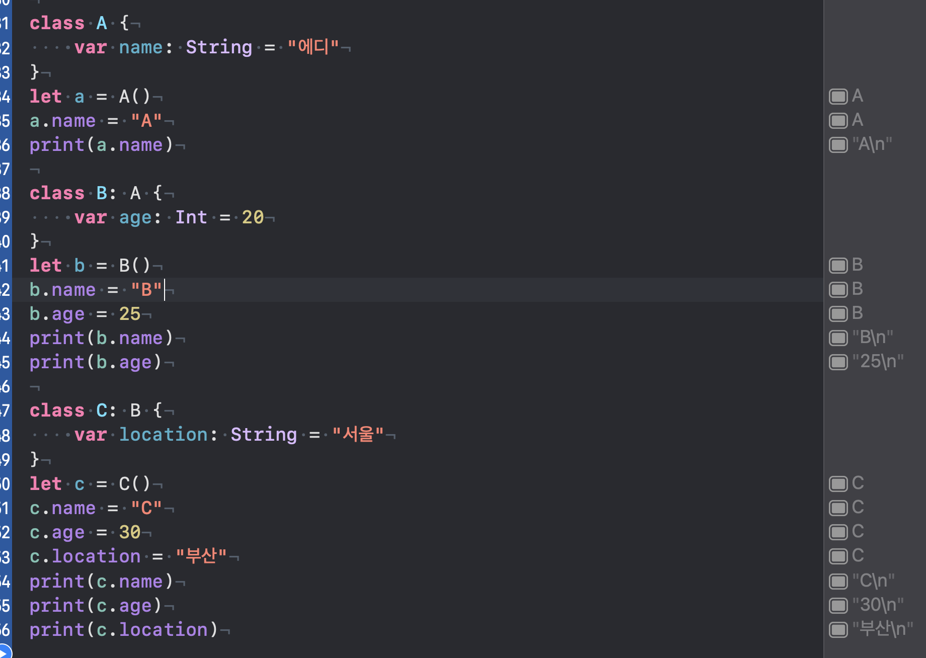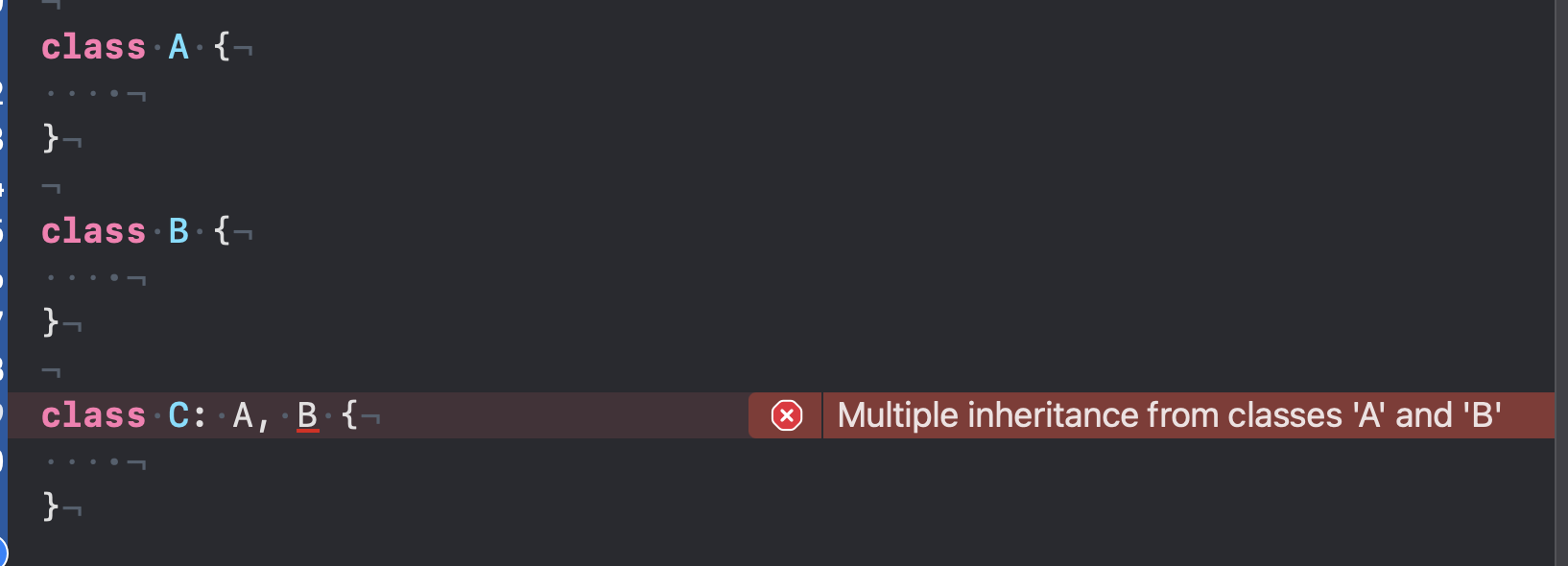 - Swift의 클래스는 일부 다른 언어와는 달리 단일 상속만 가능하며, 당연히 다중 상속은 불가하다.